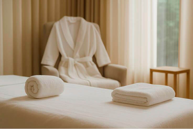 Dans un spa haut de gamme, le linge n’est pas un accessoire. C’est une matière d’ambiance, au même titre qu’une huile ou une lumière. Il structure la perception globale, souvent sans que le client en ait conscience.