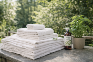 Dans l’univers du spa, le confort passe beaucoup par le textile : peignoirs moelleux, serviettes épaisses, draps de table de